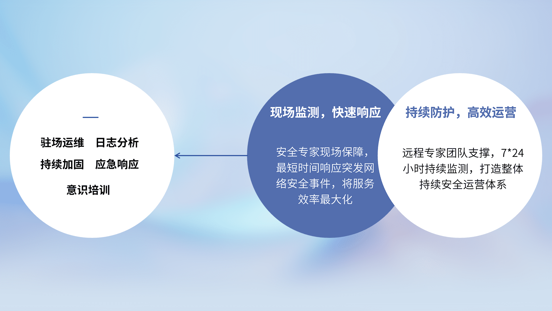 7X24小时持续监测安全事件,保持安全策略有效性,降低资产脆弱性风险,,精准拦截黑客攻击,,,减少被黑客利用的机会,,,第一时间遏制,,降低损失。。。